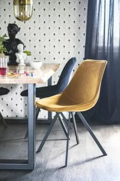 Hurmaava Belle-tuoli – pehmoinen ylellinen konjakinvärinen tuoli. Sametti-istuin yhdistettynä trendikkääseen mustaan metallirunkoon. Erittäin mukava istua, mutta silti helppo liikutella. Kerää ruokapöydän ympärille, yhdistele eri värejä tai muita BY-BOOn tuolimalleja. Monikäyttöinen tuoli sopii myös lukunurkkaukseen, työtuoliksi toimistoon tai vaikka eteiseen. Saatavilla myös muita värejä.