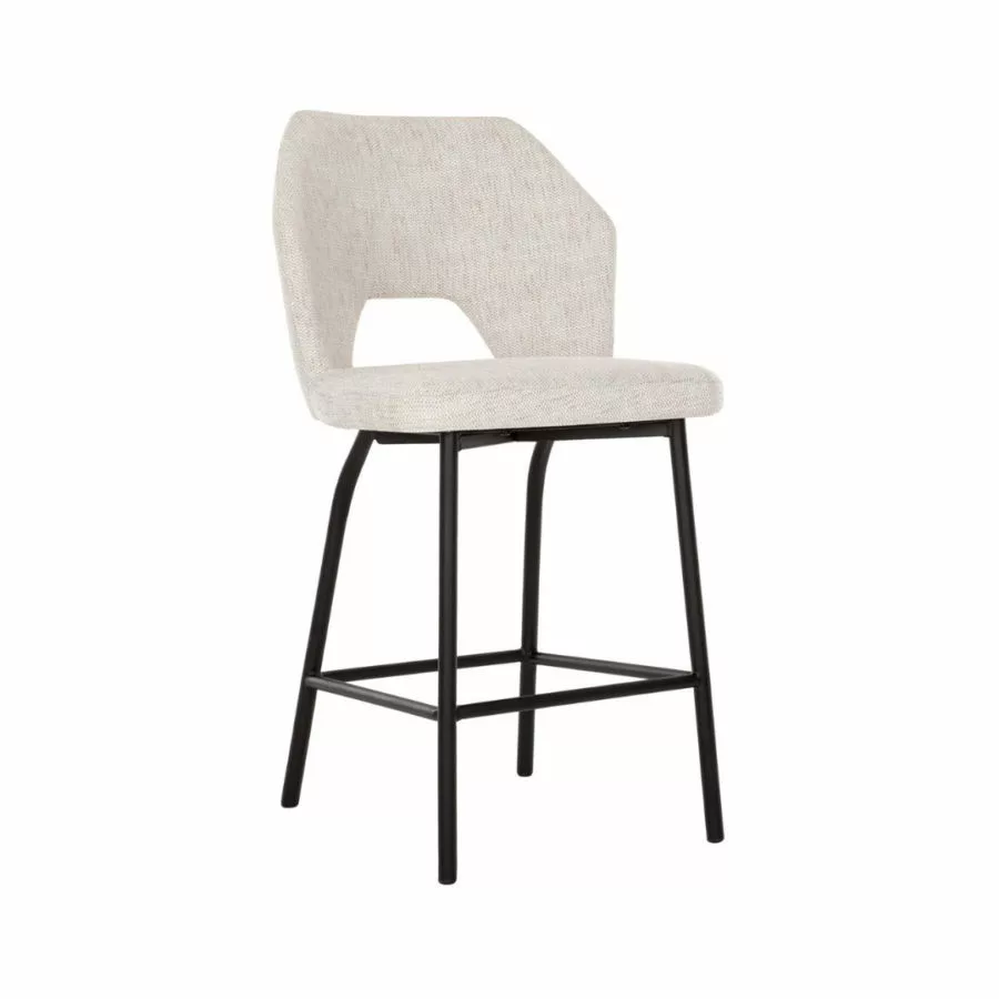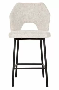 Upea Bloom baarijakkara kutsuu istumaan pidempääkin iltaa. Tuolissa on metallinen tukeva runko ja jalat sekä miellyttäväksi pehmustettu luonnon valkoinen kangaspäällysteinen istuinosa. Istuimen jämäkkä, mutta pehmeä selkänoja on muotoiltu hieman kuppimaiseksi, mikä tekee tuolista istuinmukavuudeltaan huippuhyvän. Näin ollen tuoli soveltuu niin saarekkeen tuoliksi, mutta myös saarekekorkuisen ruokapöydän tuoliksi. Katso kaikki mallistomme käsinpoimitut mukavat baarijakkarat TÄSTÄ.