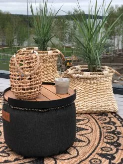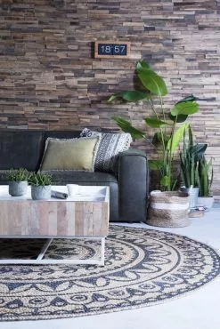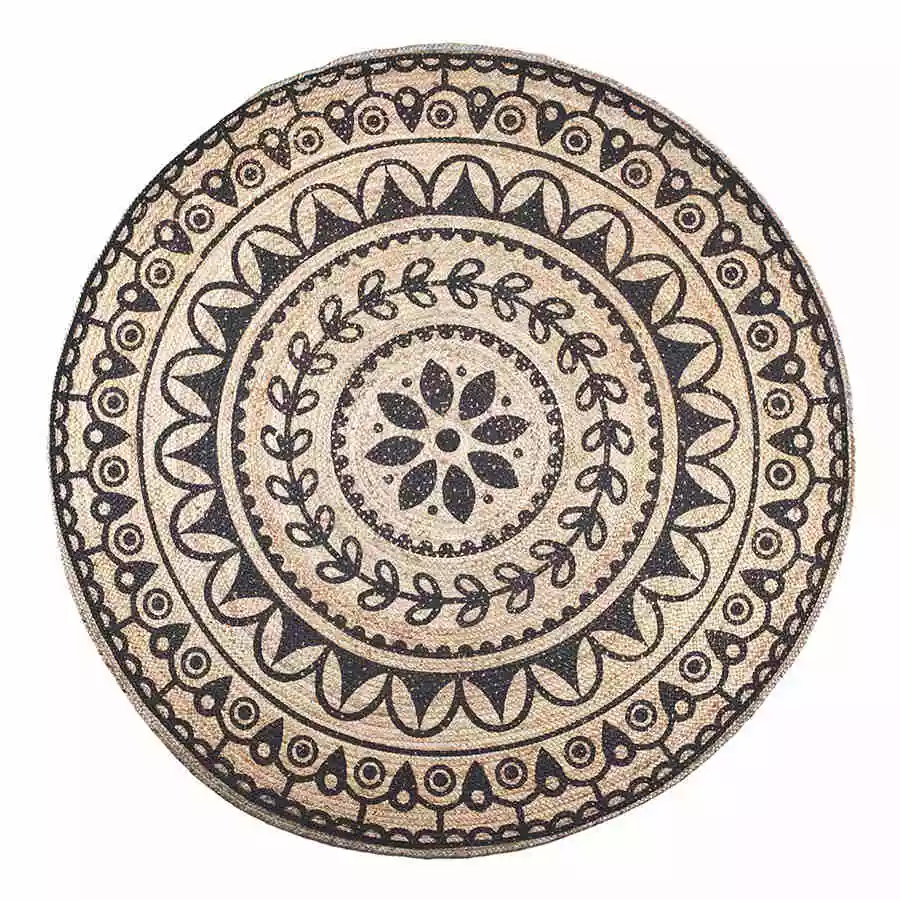 Monikäyttöinen iso pyöreä juuttimatto tuo ripauksen etnistä ja maanläheistä tunnelmaa oleskelutiloihisi. Jos kaipaat välillä rauhallisempaa tunnelmaa, käännä matto toisinpän. Takapuolella ei ole kuviointia.