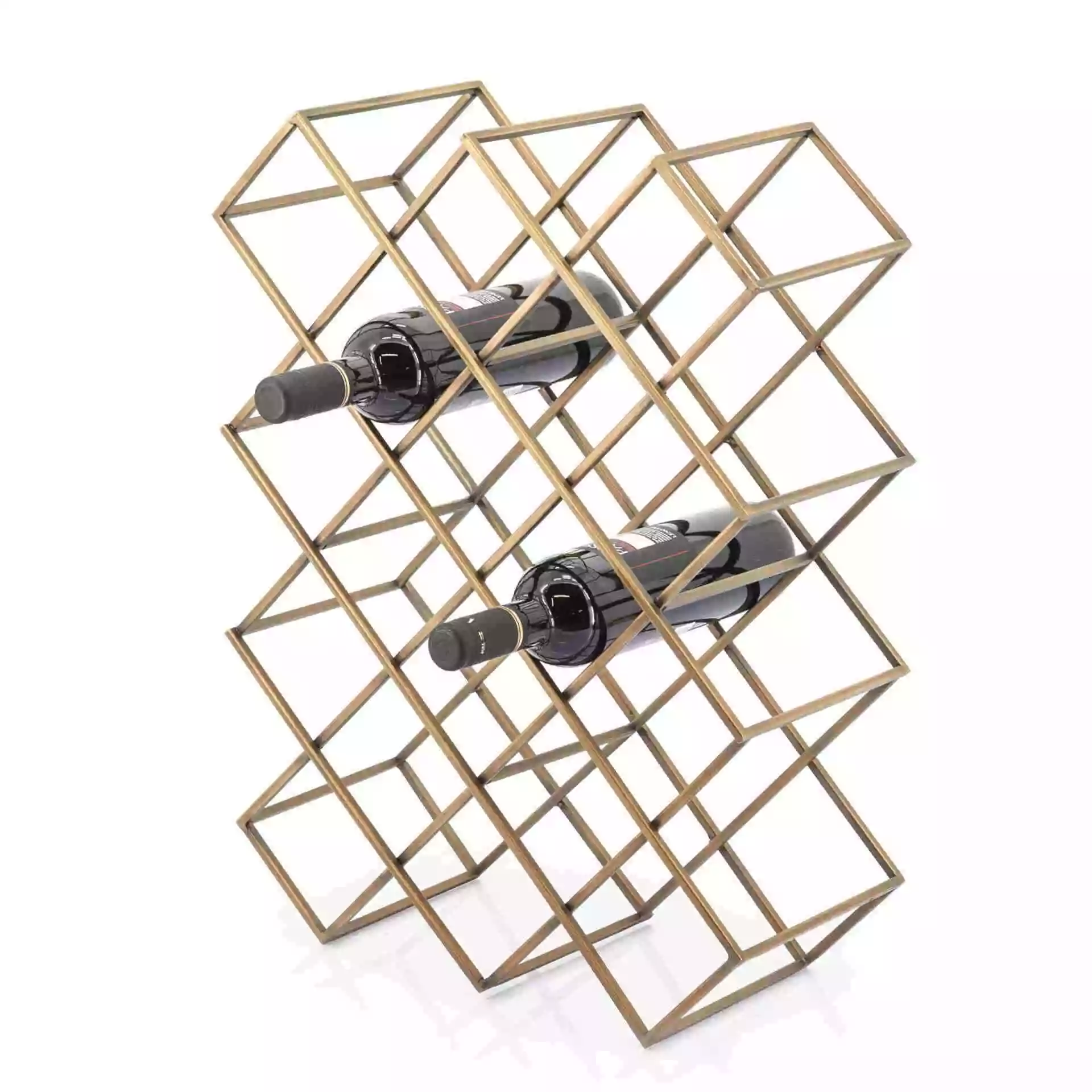 Jos viiniä sattuisi jäämään säilöön asti, tämä elegantti kuparinvärinen viiniteline säilyttää pullosi tyylillä, asetat sen sitten kummin päin tahansa. Voit asettaa messinkisen viinitelineen lattialle, mutta se mahtuu myös keittiön välitilaan. Kevyt linjakas muotoilu ja tunnelmallinen kulutetun näköinen messinkipinta.