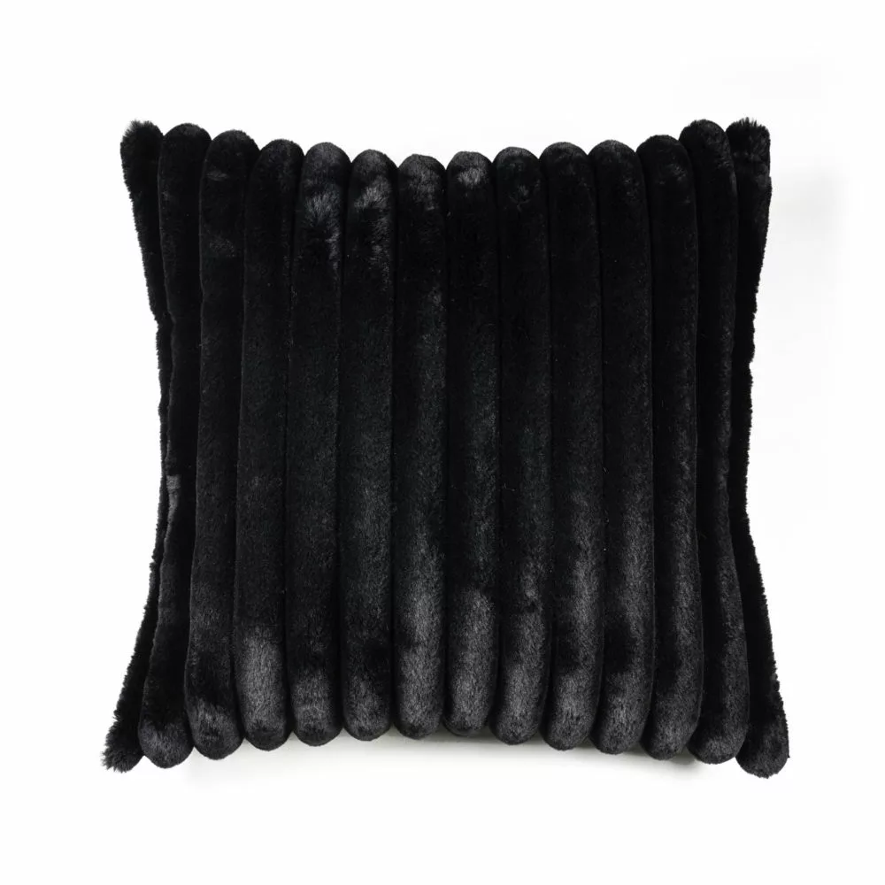 Ylellisen muhkea Wuzzy black sisustustyyny on niin ihanan suloisen pehmeä, ettei siitä tiedä, pitääkö selän takana vai sylissä. Sametin pehmeys, tyylikäs pikimusta väri ja tikatut raidat ovat näyttävä yhdistelmä. Musta sohvatyyny tuo säpinää sisustukseen, mutta myös kehystää kauniisti kuosillia tyynyjä.