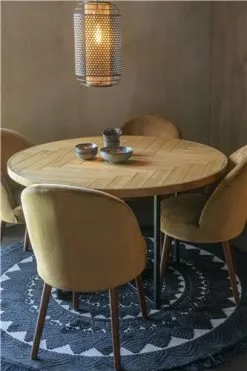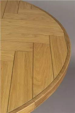 Katsetta ja elämää kestävään sisustustyyliin laadukas puinen ruokapöytä. Pyöreä ruokapöytä on kätevä moneen tilaan ja tässä mallissa käytännöllinen jalkojen muotoilu, jättää hyvän tilan kaikille istujille. Hyvä koko 4-6 hengelle. Erittäin käytännöllinen ja helppohoitoinen tammipöytä.