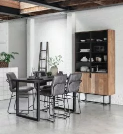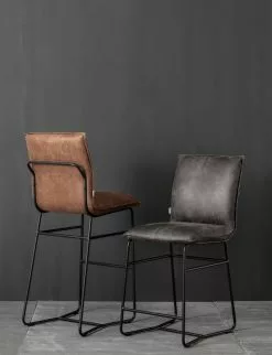 Näyttävä Delaware hiilenvärinen baarijakkara vetoaa vahvalla rakenteellaan ja pehmeällä vintage-nahkapinnalla. Matala baarituoli soveltuu parhaiten keittiön saarekkeen tuoliksi. Tuolissa on metallinen tukeva runko ja jalat sekä käytännöllinen kahva takana, josta on hyvä siirrellä tuolia jättämättä nahkapintaan sormenjälkiä. Kahva myös tuo tuoliin mielenkiintoa myös katsottuna takaapäin ja siihen voi myös ripustaa esimerkiksi koristeet tai servietit.