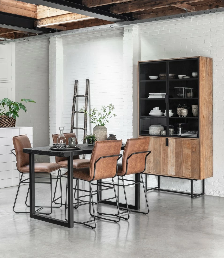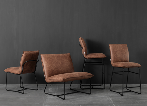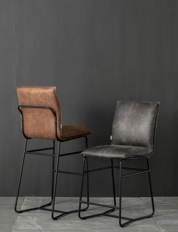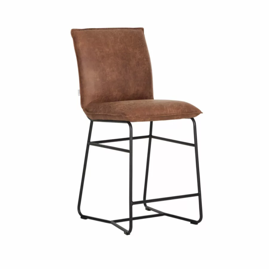 Näyttävä Delaware konjakinvärinen baarijakkara vetoaa vahvalla rakenteellaan ja pehmeällä vintage-nahkapinnalla. Tuolissa on metallinen tukeva runko ja jalat sekä käytännöllinen metallikahva takana, josta on hyvä siirrellä tuolia jättämättä nahkapintaan sormenjälkiä. Kahva myös tuo tuoliin mielenkiintoa myös katsottuna takaapäin ja siihen voi myös ripustaa esimerkiksi koristeet tai servietit. Nahkaverhoiltu tuoli sopii moneen erilaiseen sisustukseen.