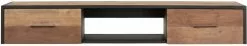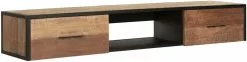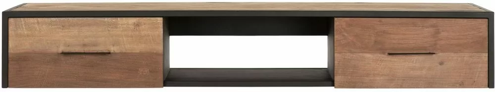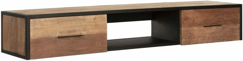 Tyylikäs matala puinen tv-taso, joka on valmistettu kierrätyspuusta. Tämä tv-taso on mahdollista nostaa seinälle. Ripustettava televisiotaso jättää lattian vapaaksi ja on siksi ilmava ja siisti ratkaisu moneen tilaan. Laadukas rouheasti viimeistelty tiikkipinta tuo kotoisuutta ja lämpöä sisustukseen.