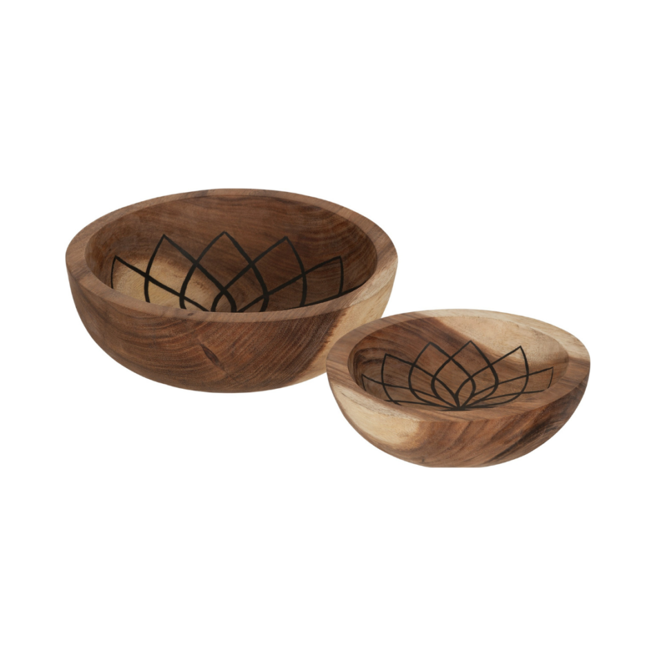 Kaunis tiikkipuinen kulhosetti Mandala Lotus -kuviolla. Kierrätyspuisilla pikkukulhoilla luot kotoisaa tunnelmaa ja säilytät pikkutavarat kauniisti. Puukulhot toimivat myös tarjoiluun pikku purtavalle.