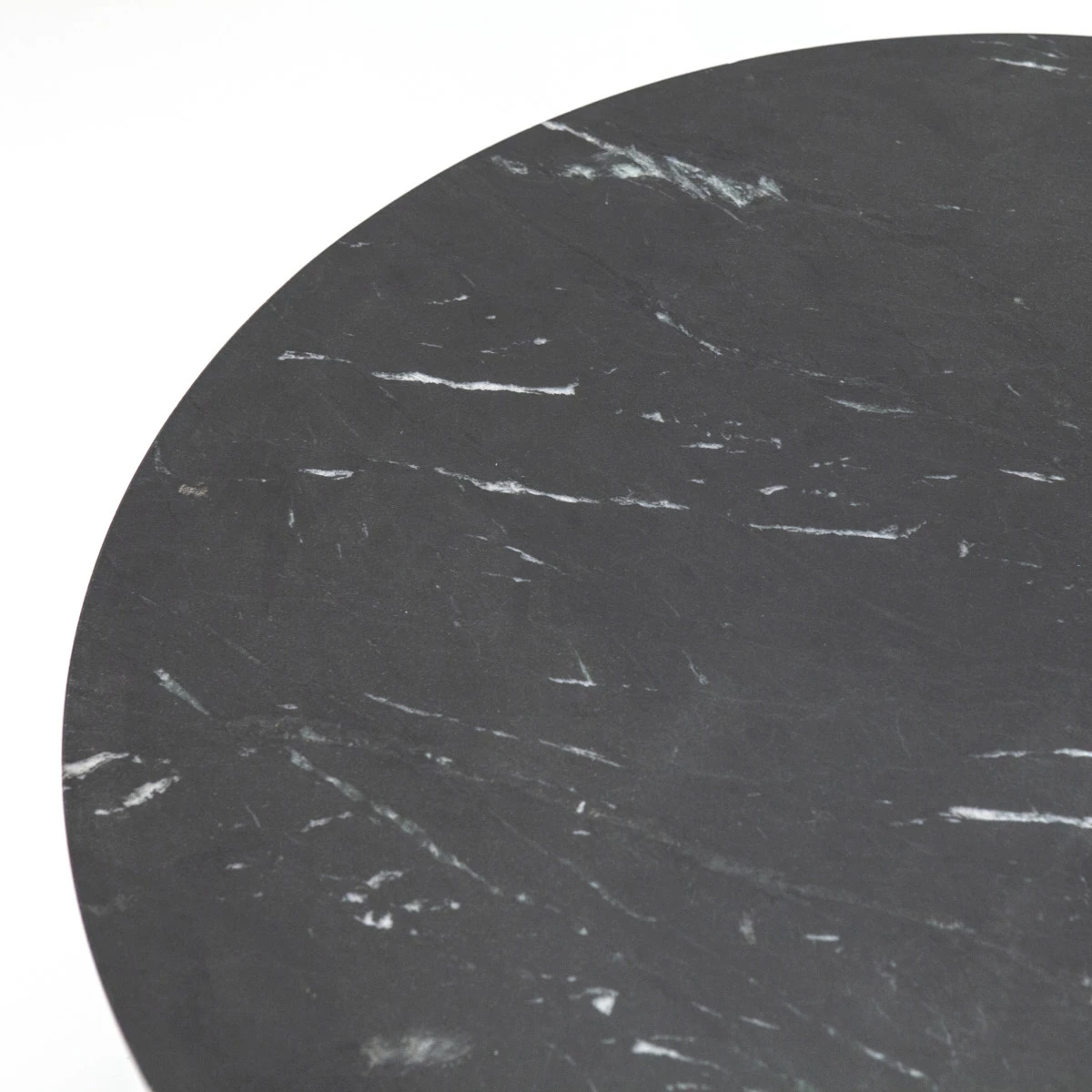 Tyylikäs pyöreä musta sohvapöytä marmorista. Jämäkkä kivipöytä olohuoneen kahvipöydäksi ei hetkahda tarjoilujen alla. Pöytälevyn musta marmori ja mustat kulmikkaat metallijalat luovat mielenkiintoisen rouhean mutta elegantin yhdistelmän. Pyöreä sohvapöytä toimii hyvin myös kauniina sivupöytänä tai tarjoilupöytänä. Tämä vahvatekoinen marmoripöytä pysyy pystyssä niin arjen riennoissa kuin juhlissakin!