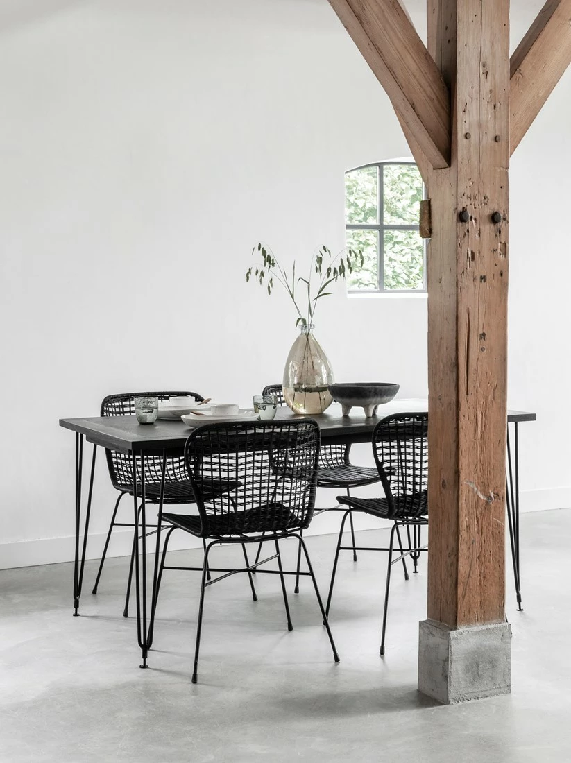 Laadukas Bahamas punostuoli musta on ilmava, kaunis ja helppohoitoinen ruokapöydän tuoli. Hyvä muotoilu ja jykevä rautarunko tukee selkää oikeasta kohdasta ja tekee tuolista hyvän ja tukevan istua. Musta väri tuo ilmavaan tuoliin sopivasti särmää. Saatavilla myös naturel väri.