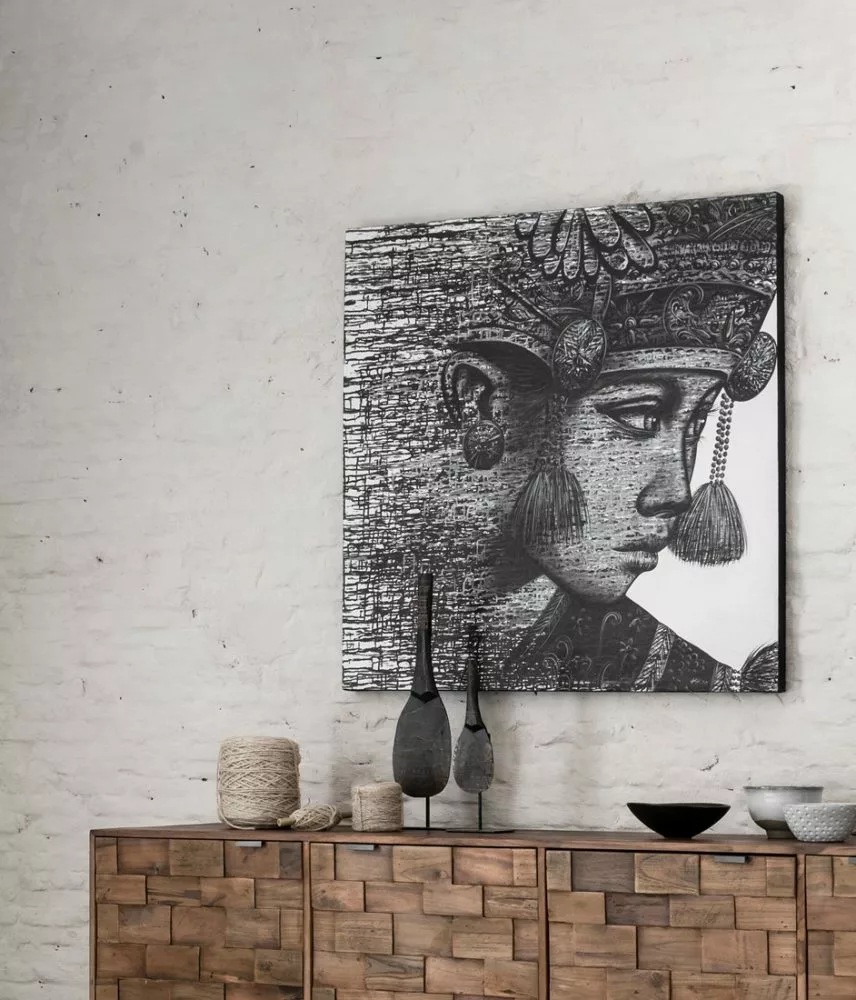 Must Livingin näyttävä Komang taulu tuo balilaista eksotiikkaa ja enemmän kuin päiväannoksen periksiantamatonta asennetta kotisi seinälle. Musta-valko väriyhdistelmä saa canvas- teoksen sopimaan moniin värimaailmoihin ja on siksi helppo yhdistää kotisi sisustukseen.