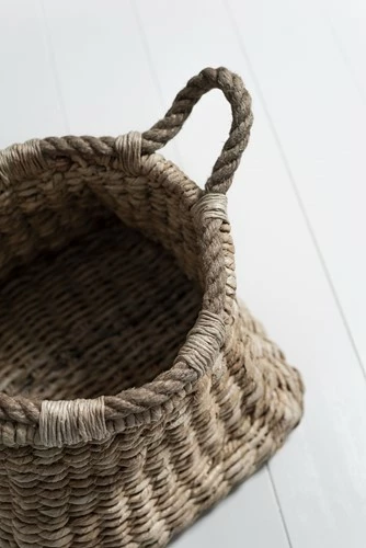 Näyttävä suuri säilytyskori tyylistään tarkalle sisustajalle. Taidokkaasti käsinpunottu laadukas ja kestävä säilytyskori vaativaan makuun. Kori kätkee kauniisti sisälleen huovat, tossut tai vaikka lelut. Vahva hamppu-puuvillapunos ja kauniit letitetyt reunat viimeistelevät upean sisustuskorin. Toimii säilytykseen, somisteeksi kuin ison viherkasvin suojaruukuksikin. Ai onko meillä tyylin päälle ymmärtäviä asiakkaita vai? No kyllä on!