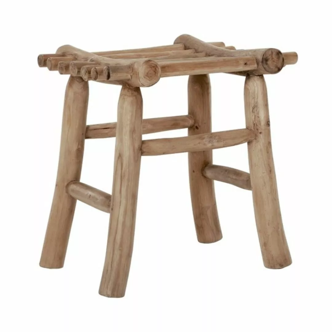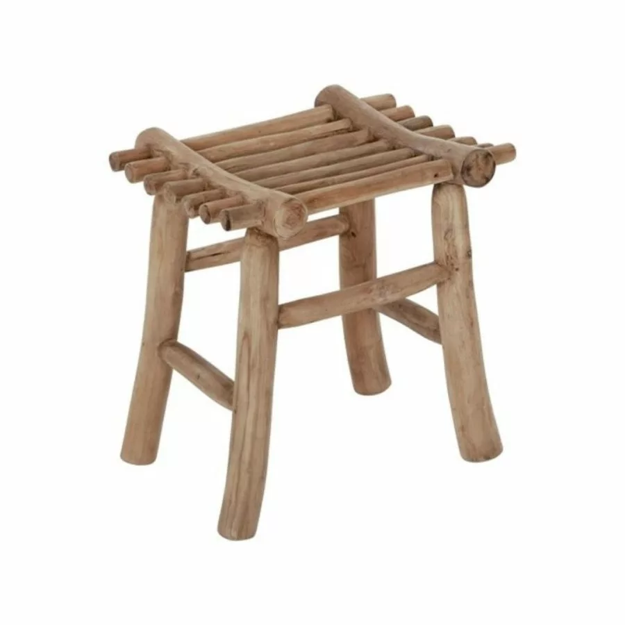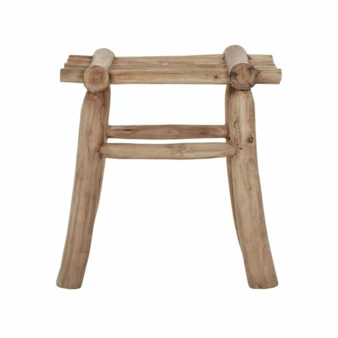 Tämä upea puinen jakkara on luotu kunnioittamaan luontoa sekä käyttäjäänsä. Tiikkipuinen jakkara valmistetaan teak puun oksista, joista ei voida sahata leveää lankkua, mutta jotka ovat erittäin kestävää materiaalia huonekaluihin. Jokainen puupenkki ja jakkara on näin ollen uniikki ja käsin valmistettu. Vaikka jakkara on tehty oksista, sillä on miellyttävä istua.