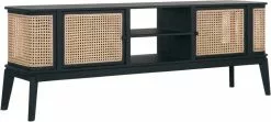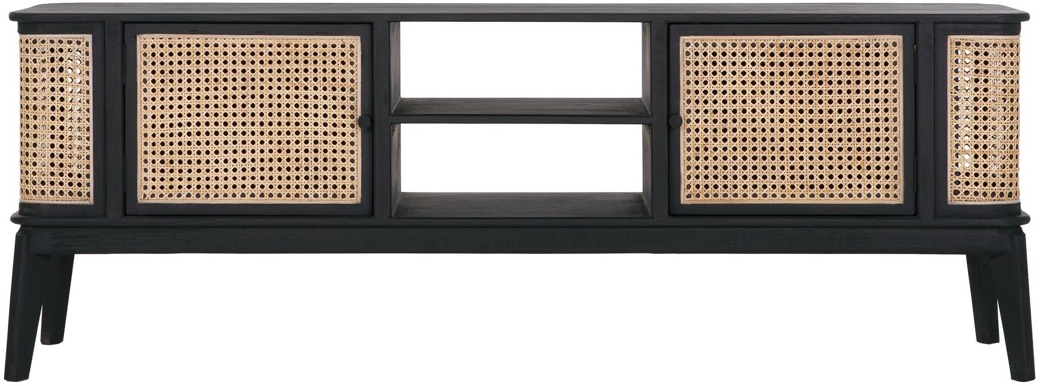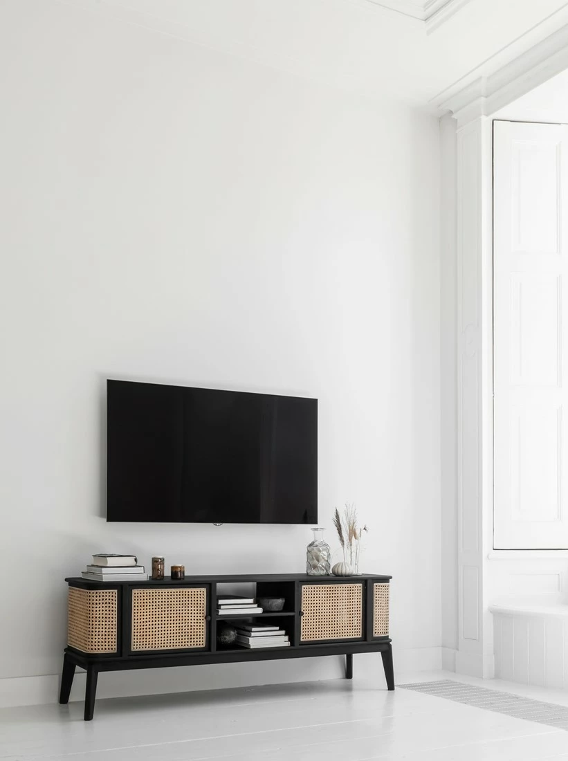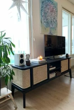 Jotain erilaista tyylillä! Rottinkinen tv-taso, joka pysyy paikoillaan, ja jota kestää katsella pidempäänkin. Täydellinen säilytyskaluste, jos boho sisustus on lähellä sydäntä, mutta et halua tinkiä tyylistä! Siis laatua taloon. Kaksi sivuilla aukeavaa ovea kätkee taakseen hyvän säilytystilan tv-tilan tavaroille. Avohyllyille saat ne värkit, jotka pitää saada näkösälle. Kätevä ilmava säilytyskaluste myös muihin tiloihin.