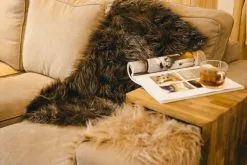 Pehmeä ja kaunis ruskea lampaantalja. Eettinen ja laadukas keinokarva sopii myös allergikoille. Ihanaa lämpöistä tunnelmaa vaikka olohuoneeseen tai kuistin penkille, tai vaikka vaunun lämmikkeeksi.