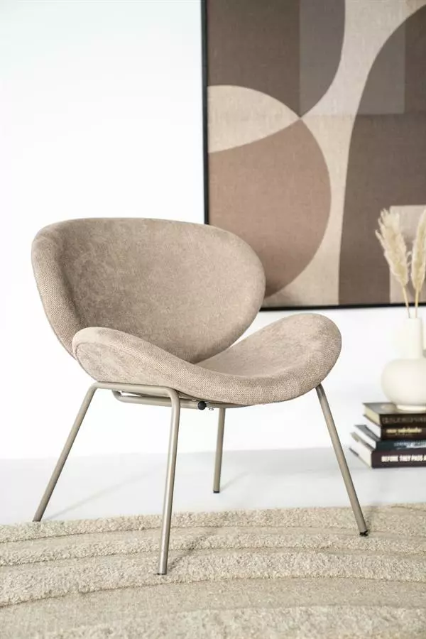Ruskea nojatuoli Ace on melkoinen ässä olohuoneessa! Mielenkiintoinen aaltomainen muotoilu ja tukeva metallirunko ruskean istuimen kanssa samassa värissä. Hieman kuppimainen kangasverhoiltu istuin on hyvä istua. Tämä ruskean beige lepotuoli sopii myös pieneen tilaan. Siinä on huippu istuinmukavuus ja kauniit luonnonläheiset värivaihtoehdot.