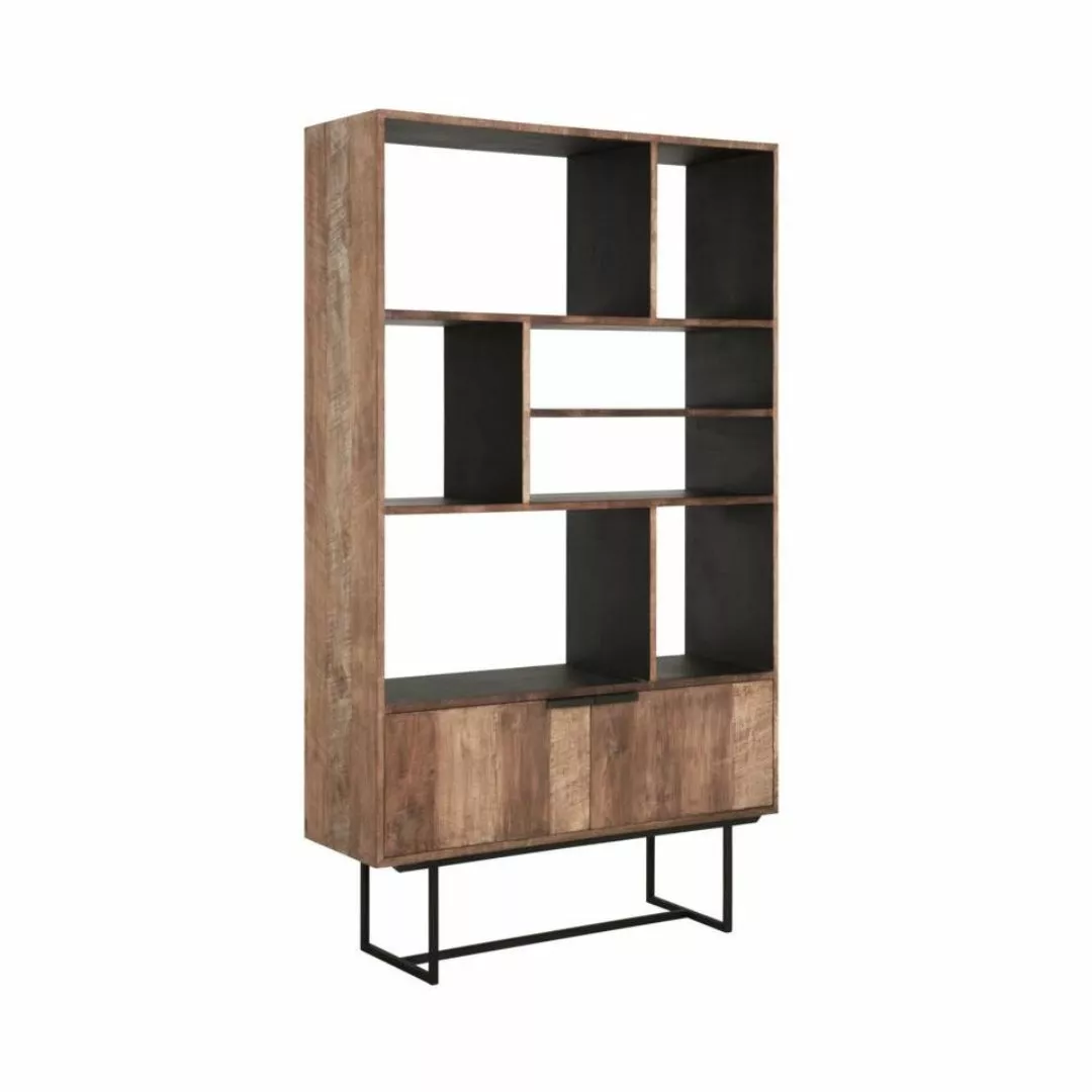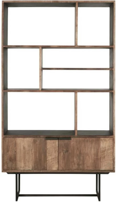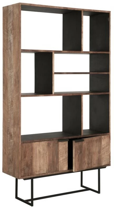 Upean näyttävä leveä puinen kirjahylly usealla epäsymmetrisellä avohyllyillä ja kahdella kaapilla. Laadukas kokopuinen kirjahylly käy niin keittiön astiakaapiksi kuin olohuoneen sisustukseenkin tai lukunurkkaukseen. Hyllykkö kestää niin katsetta kuin käyttöäkin. Sivuille aukeavat tuplaovet.