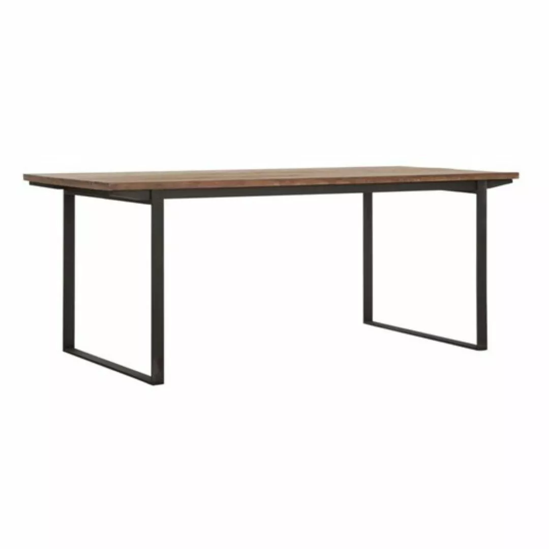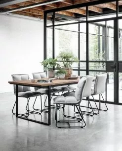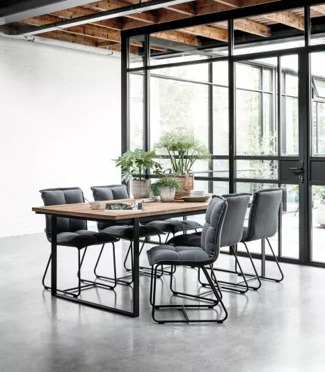 Tyylikäs tiikkipuinen ruokapöytä vahvoilla mustilla metallijaloilla. Tyylikkään viimeistelemättömäksi jätetty rouhea tiikkipinta tuo kotoisuutta ja lämpöä sisustukseen. Rautakehys nousee kauniin viistosti tiikkipuisen pöytälevyn alle, mikä tuo elegantin lisän rouhean pöydän muotoiluun. Tiikkipöytä ei pienestä hetkahda ja on myös helppohoitoinen.