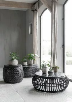 Rimini large pyöreä rottinkipöytä on täydellinen valinta rennon tyylikkääseen sisustumakuun. Rottinkinen pöytä mustana on upea katseenvangitsija ja kokopuinen kuvioitu pöytälevy on sekä mielenkiintoinen että käytännöllinen. Mustalla värillään ja kauniilla materiaalillaan teet kodistasi uniikin.