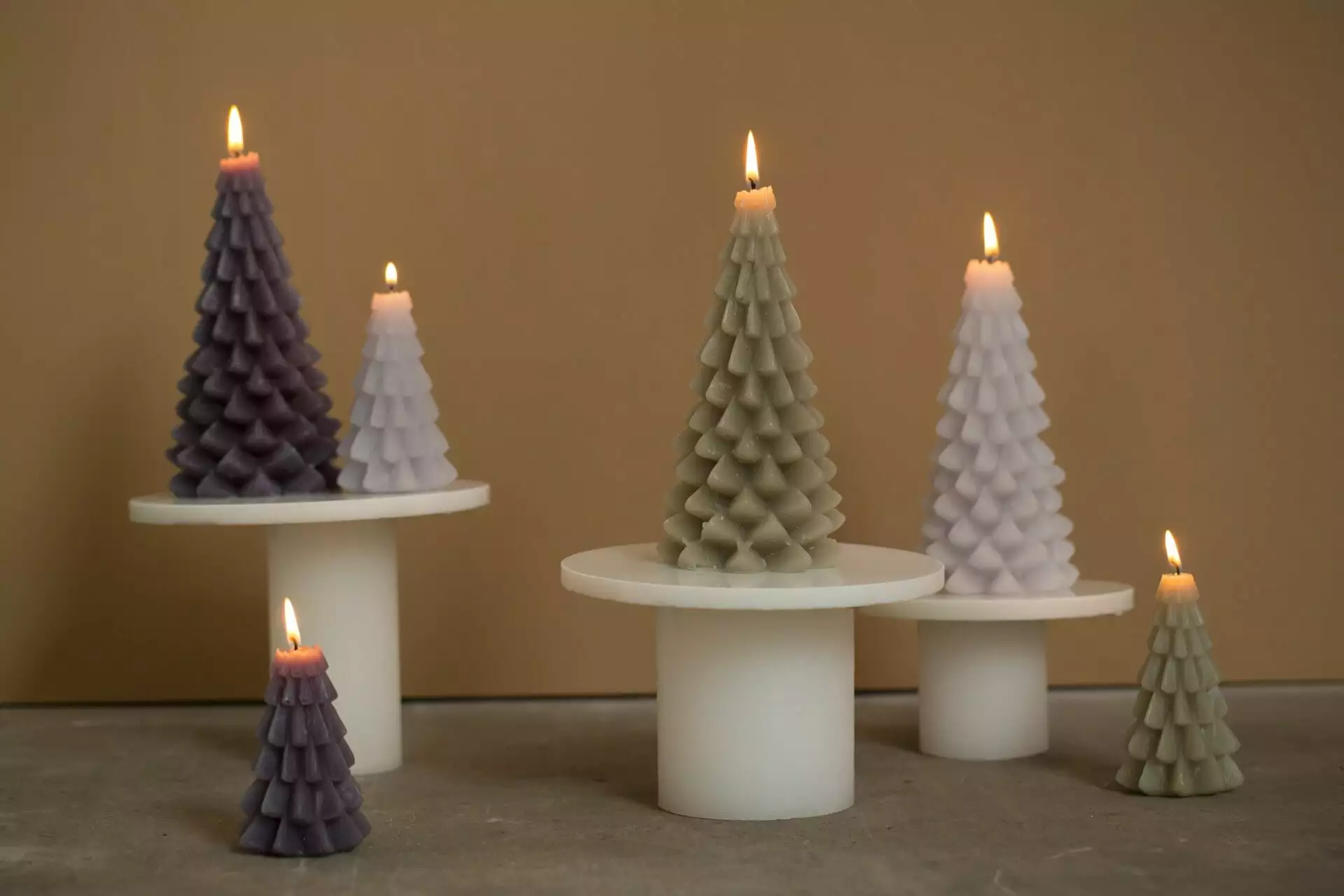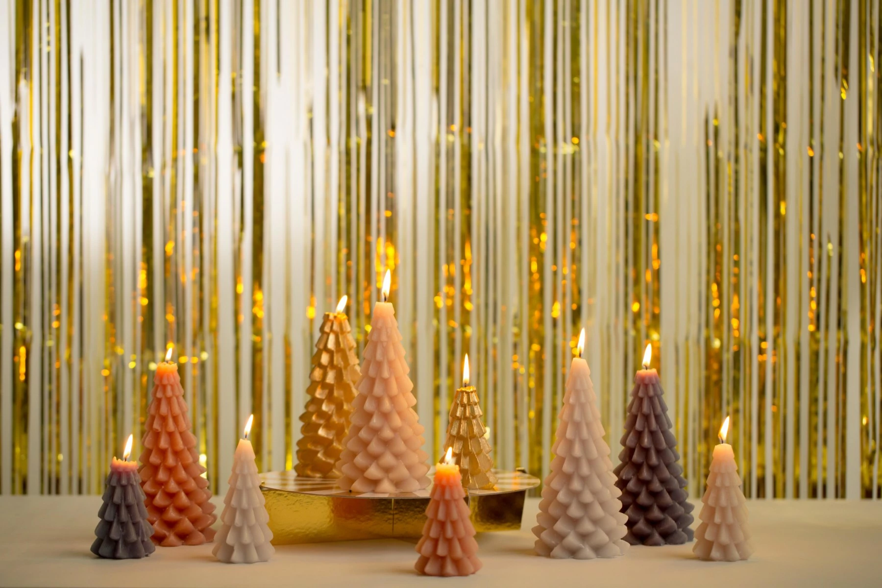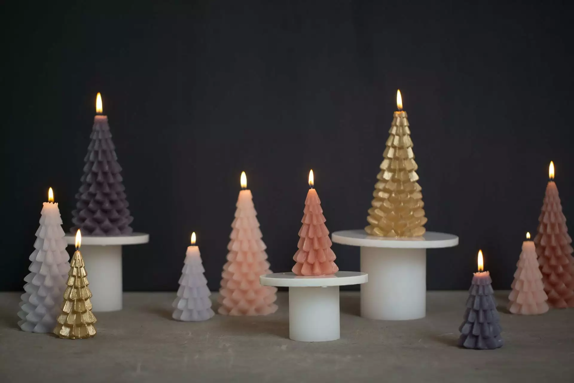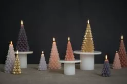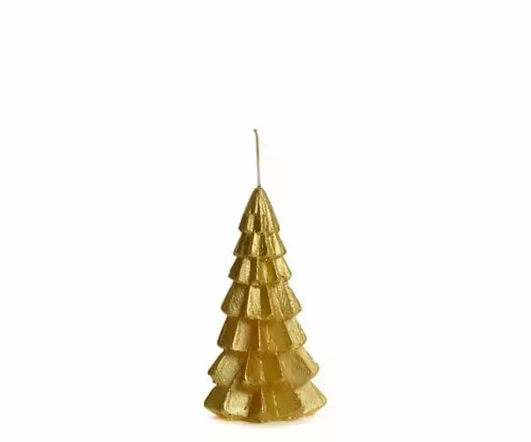 Kultainen käsinvalettu ja läpivärjätty pieni kuusikynttilä, jonka paloaika 13h. Palaa kauniisti loppuun asti. Ei tuoksua. Kokoa eri väreistä vaikka kokonainen metsä kodin kaunistukseksi.
