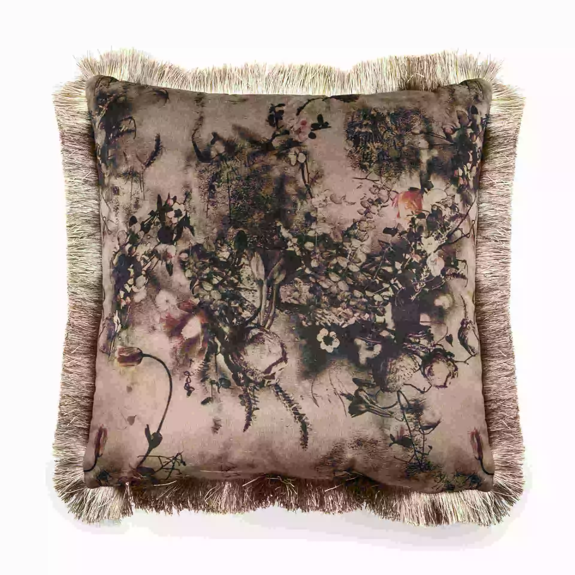 Windsor – Nimikin jo vähän viittaa siihen suuntaan, että nyt ei ole mistään halpistyynystä kyse! ???? Ylellinen samettityyny kukkakuosilla ja sivuhapsuilla tekee kodistasi palatsin ja sinusta tietenkin sen hallitsijan! Beigen sävyisessä taustakuosissa tummia pieniä kukkia lehtineen. Eläväkuvioinen sisustustyyny tuo herkullisesti tyyliä sisustukseen. Irrotettava sisätyyny sisältyy. Pesu 30 ‘C.