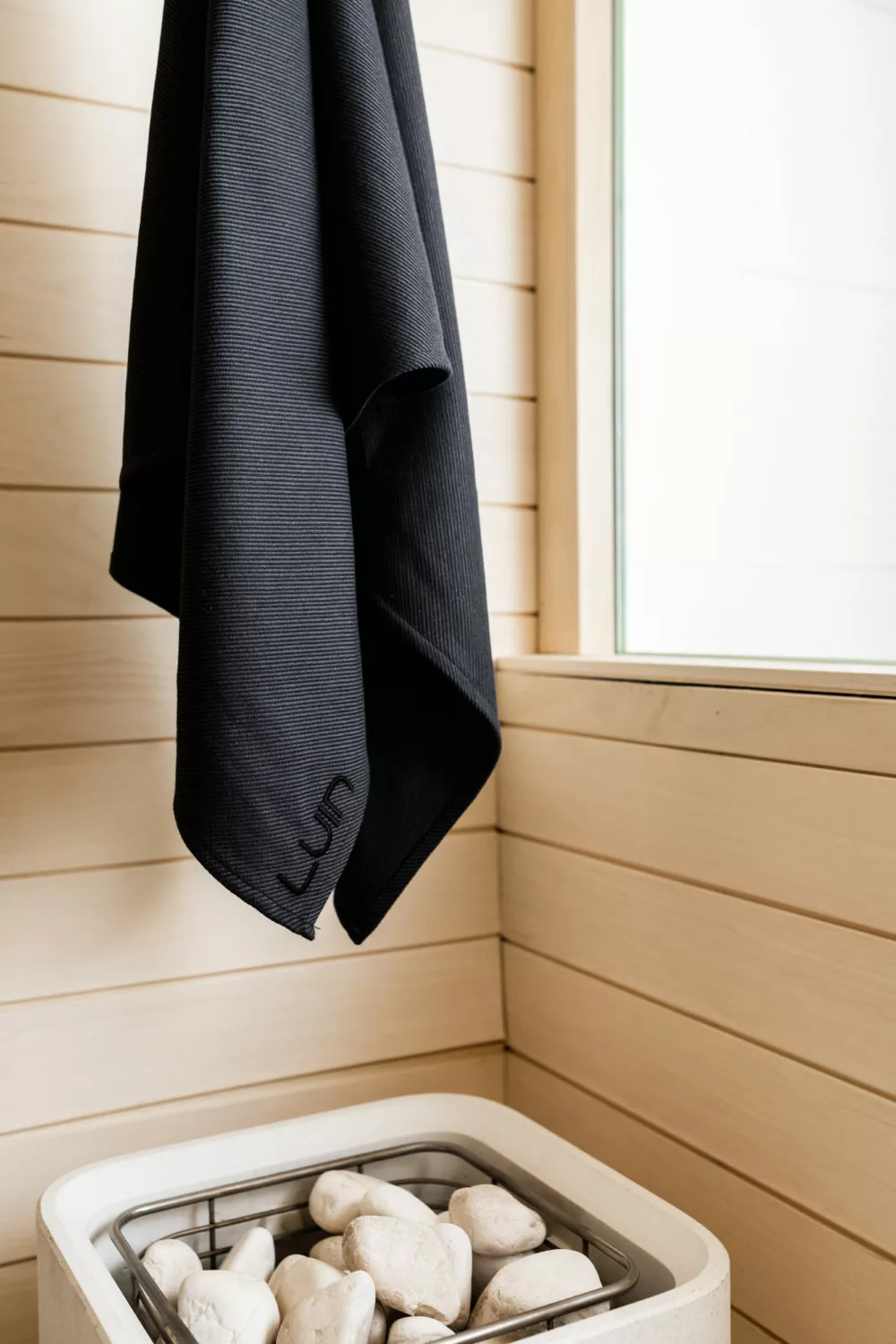 LUIN laudeliina 150×60 Black. Monikäyttöinen laudeliina sopii ulos yhtä hyvin kuin sisällekin. Käytä hemmottelevana saunan laudeliinana tai tyylikkäänä istuinsuojana terassituoleilla.