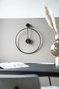 Sundial large iso seinäkello on saanut inspiraationsa aurinkokellon yksikertaisesta ideasta. Suuri 70cm halkaisijan musta metallikierre ja linjakkaat puuviisarit yhdistyvät näyttäväksi seinäkelloksi, joka sekä näyttää ajan että koristaa seinän tyylillä. Ripustus seinälle heilurimaisesta pidikkeestä.