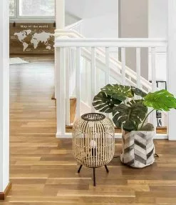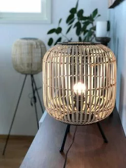 Lämminhenkinen tunnelmanluoja tämä pikku Sunset rottinkivalaisin. Toimii oivallisesti sisustuselementtinä, sillä asetat sen helposti niin lattialle kuin tasolle pöytävalaisimeksi. Korosta asetelmaa tai muuta sinulle tärkeätä paikkaa kodissasi. Punottu bamburuoko metallijaloilla tekee valaisimesta kevyen ja tyylikkään. Vaihtele lamppua ja luot valaisimella erilaisia tunnelmia.