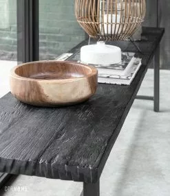 Jykevä Timeless Black musta puupenkki ei hetkahda reilummankaan istujan alla. Tiikkipuu on erittäin vahva materiaali ja rautarunko on tehty ikuiseksi. Beam sarjan pöydissä ja penkeissä päät on viimeistelty säilyttäen sahajälki, mikä tekee upeaan huonekaluun tyylikkään rouhean loppusilauksen. Yhdistä tiikkipuiseen RUOKAPÖYTÄÄN ja ruokailutilasi rento tunnelma on täydellinen. Toimii hyvin myös elämää kestävänä tyylikkäänä eteisen penkkinä.
