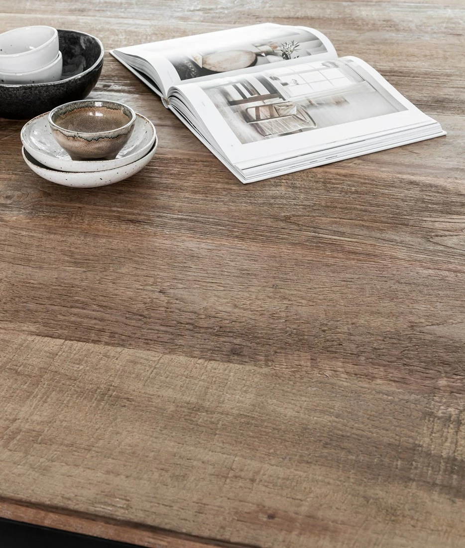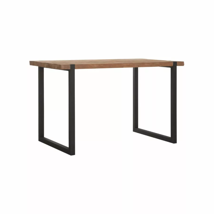 Tyylikäs tiikkipuinen saarekepöytä nousee korkealle ja istuimiksi käyvät saarekekorkeuteen tarkoitetut baarituolit. Saarekepöydällä tuot eloa keittiön tai ruokailutilan sisustukseen ja helpon istahduspaikan kotiin. Oletko ajatellut, että keittiön saareke voi olla myös irrallinen pöytä omana yksikkönään? Aika kiva idea, eikös! Timeless -sarjan muotoilu on jykevää. Rouheasti viimeistelly tiikkipinnan päät on viimeitelty sahajäljelle, joka tuo extra rosoisuutta, mutta myö näyttävyyttä ja lämpöä tyyliin. Rouhean lankkupöydän viimeistelee rautajalka, joka nousee pöytälevyn alle korostamaan pöydän mallia.